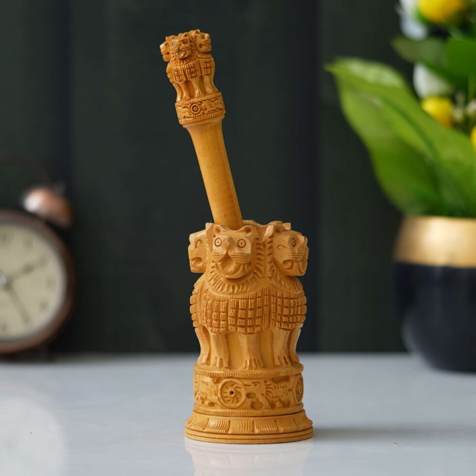 Add a touch of Indian heritage to your home decor with our handcrafted wooden Ashoka Pillar replica. Inspired by the iconic Ashoka Pillars found throughout India, this meticulously crafted piece captures the elegance and grandeur of ancient architecture. Made from high-quality wood and finished with intricate detailing, this replica is a stunning addition to any living space or office. Whether displayed on a mantel, shelf, or desk, it serves as a reminder of India’s rich history and cultural significance. Bring a piece of timeless elegance into your home with this exquisite wooden Ashoka Pillar replica